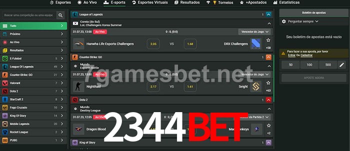 O 2344Bet oferece uma grande seleção de opções de apostas em e-sports com probabilidades competitivas